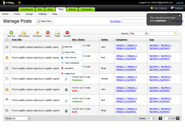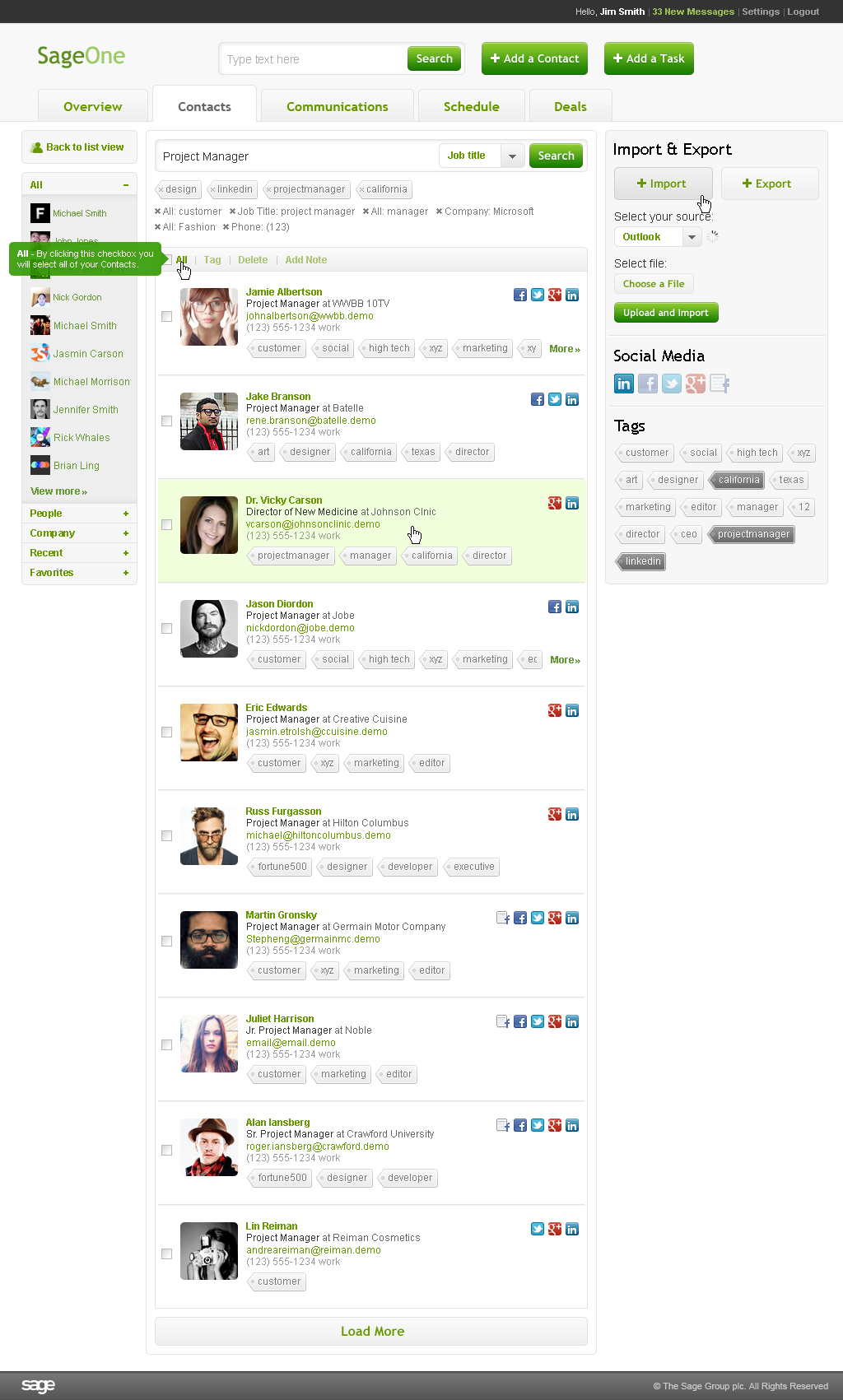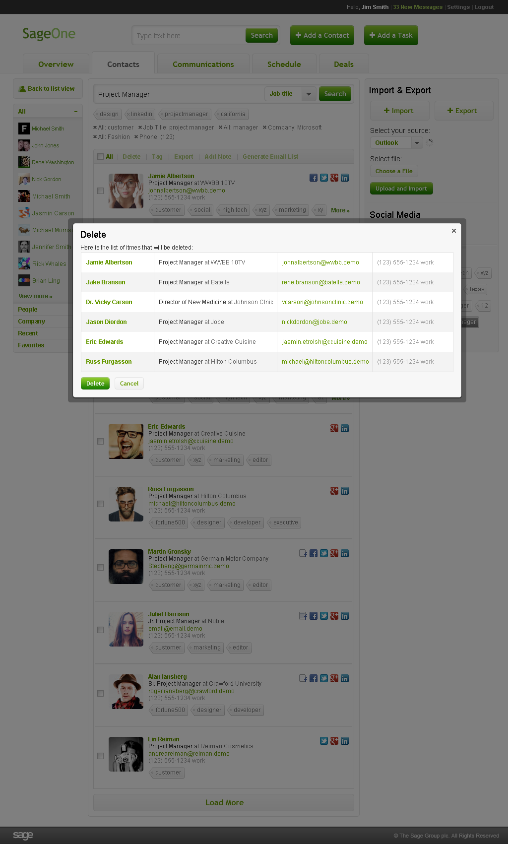 Tasks involved in each project: